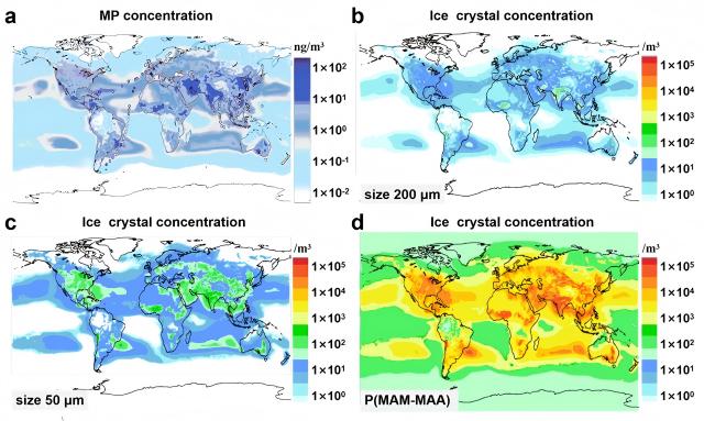 图四 全球情景评估:老化微塑料提升冰晶数的空间分布
