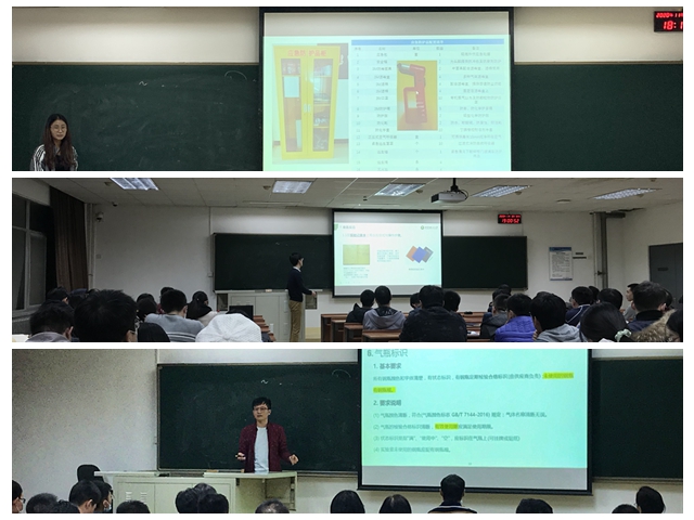 接着,中心安全员刘宜娜老师从实验室公共安全的角度为同学们做了报告,为即将开展科研工作的新生提供了全面的安全教育,并讲解了消防安全和急救知识,希望全体学生都能提高安全意识,并积极宣传“人人为我,我为人人”的爱护实验室工作环境的良好意识。阻燃中心涉及到高压气体的使用,实验室主任陈思禄老师做了题为“实验气体的安全使用及规范”的报告,从实验气体的采购、存储、分类、标识、可燃气体安全使用、减压阀的使用以及气体存放运送等各个方面为同学们做了详尽的说明,并在最后以趣味问答的形式和同学们积极互动,加深同学们对所讲授的内容的理解和认知。高分子以及有机合成在大家在平时实验中十分普遍,夏中华老师以“有机合成实验流程与安全”为题做了报告,他先是为大家讲解了有机合成实验流程,提升了大家的实验设计思维,而后从实验流程出发讲解了合成实验中常见的操作误区,并要求同学们以严谨认真的态度对待科研工作。