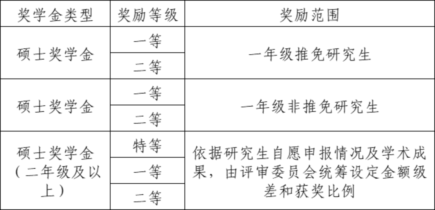 硕士研究生学业奖学金等级与金额设定标准