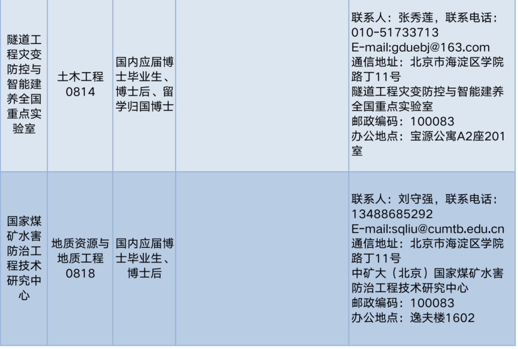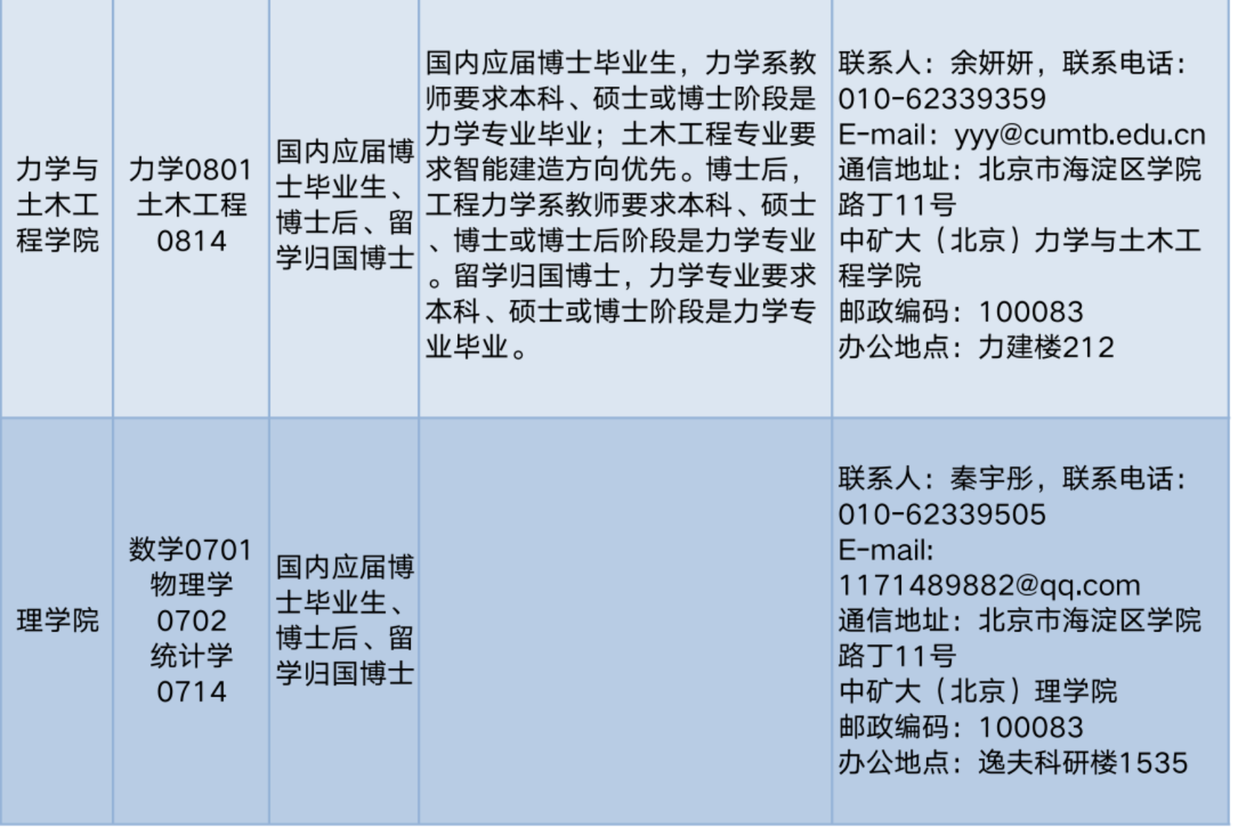 专任教师主要接收矿业工程、安全科学与工程、地质资源与地质工程、土木工程、测绘科学与技术、力学、机械工程、电气工程、信息与通信工程、控制科学与工程、管理科学与工程、环境科学与工程、化学工程与技术、计算机科学与技术、数学、统计学、公共管理、思想政治教育、物理学、体育学等学科的优秀人才。