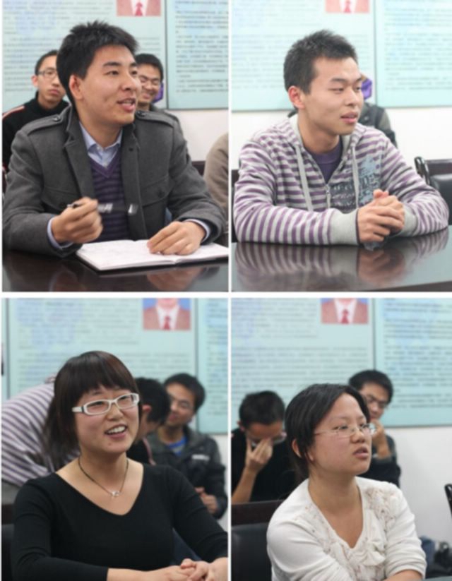 会议期间,04210701班的优秀学长学姐也与大家进行了互动活动。第十三届支教团成员谢晓辰介绍了07级该专业同学的现状,举例说明考研、求职和出国同学的比例及准备过程;07级专业第一易宁向大家详细介绍了在实验室学习的成长与收获;李巍巍从专业学习的角度出发,讲解了专业学习课程与学习方法;已拿到多家公司offer的张妍婧同学则介绍了专业工作方向。四位优秀学长的经验都将成为08级同学今后学习生活的宝贵财富。