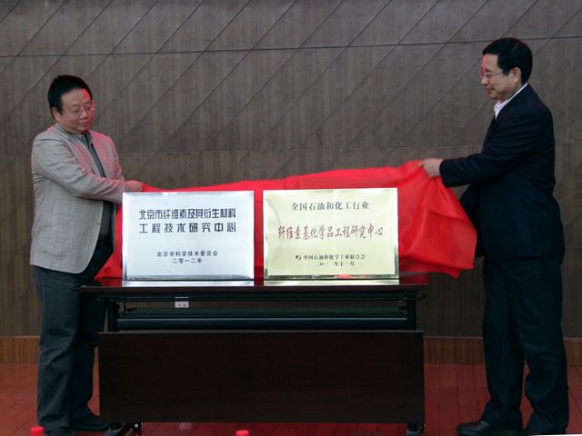 2012年12月19日下午,“北京市纤维素及其衍生材料工程技术研究中心”揭牌仪式在中关村校区图书馆一楼报告厅隆重举行。全国石油与化工行业联合会授权《全国石油和化工行业纤维素基化学品工程技术研究中心》挂牌仪式也同时举行。