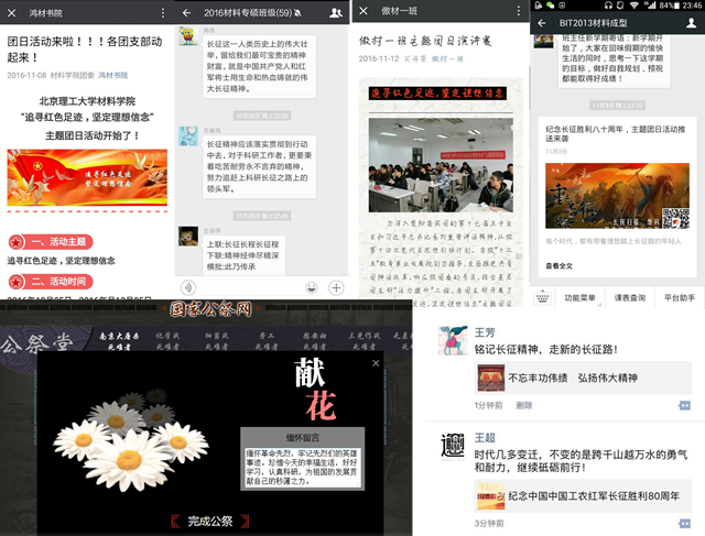 硕博团支部中,2013级,2014级和2015级博士团支部采用观看红色电影的方式回顾历史,2015级硕士一班团支部参观东城区五四大街新文化运动纪念馆,2015级硕士三班团支部和2016级硕士二班团支部举办了知识竞赛,一起缅怀先烈,探寻革命踪迹,共同回顾那段峥嵘岁月。