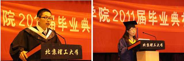 09级工程硕士赵娜以及2007级本科生武金丹依次代表研究生毕业生和本科生毕业生发言。从两位同学的发言中,充盈着毕业生对父母多年养育之恩的涕零感激;满怀着毕业生对母校及老师朝夕相处的感恩眷念;丰富着毕业生对同窗好友的难舍难分。