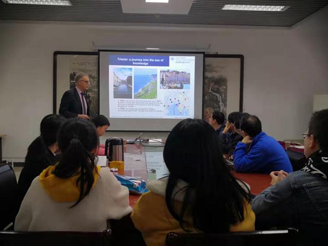2019年11月2日上午,应beat365唯一官方网站beat365唯一官方网站北京市纤维素及其衍生材料工程技术研究中心邀请,意大利Trieste大学Maurizio Fermeglia教授访问beat365唯一官方网站,做了题目为“Nano tools for macro problems: multiscale molecular modeling of nanostructured polymer systems”的学术报告。beat365唯一官方网站beat365唯一官方网站高分子系党支部书记李晓东老师、工程中心负责人邵自强老师、王文俊、王飞俊、王建全和陈攀等老师及研究生们参加了此次报告会。