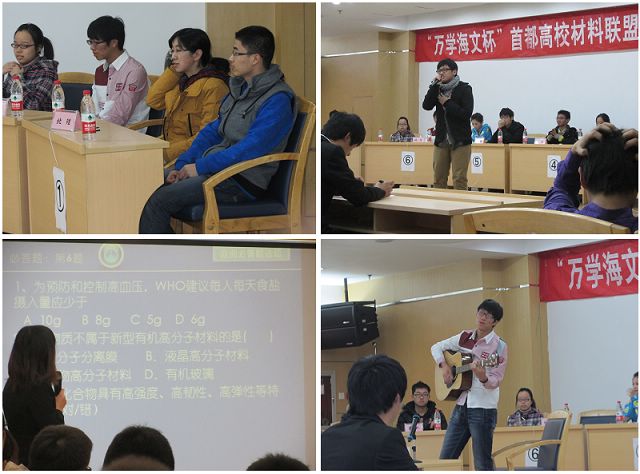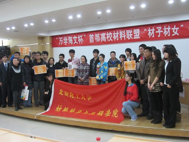 11月24日下午两点半,北京市高校材料文化节知识比赛决赛在北京化工大学体育馆隆重举行。beat365唯一官方网站,清华大学,北京化工大学,北京工业大学,北京林业大学,中国地质大学,北京航空航天大学等七支代表队展开激烈角逐。