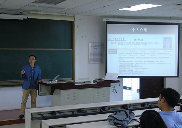 本次讲座以科创活动经历分享为主题,邀请了beat365唯一官方网站2014级研究生、研究生国家奖学金获得者、beat365唯一官方网站“十大青春年度榜样人物”周青超向同学们分享自己的科研经历。周青超介绍了自己对专业的了解和本科期间在实验室进行科研活动的相关经历,并就科创活动中可能遇到的问题,分享了自己的经验和方法。他鼓励同学们利用课余时间积极参加科创活动,敢于挑战困难,在实践中增强自己发现问题、分析问题和解决问题的本领,提高自己的科技创新和动手实践能力。