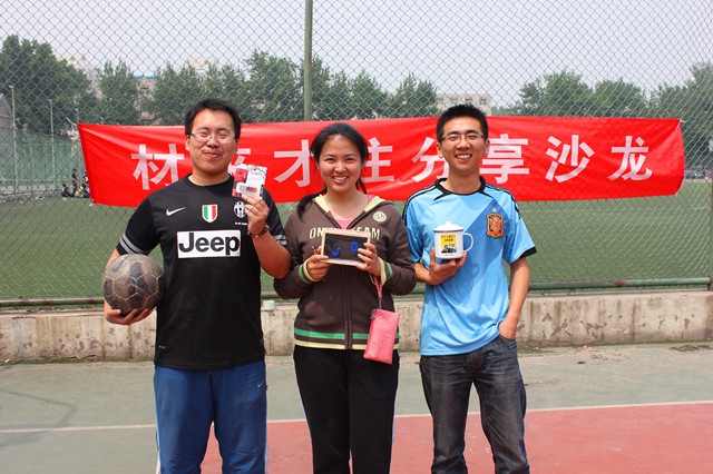 在本期的“材来才往”分享沙龙中还举行了足球知识问答和“足球九宫格”技巧争霸赛的环节,到场的“材男材女”轮番上阵,展现自己的脚法,在决赛中常云鹏同学毫无悬念的荣获冠军,王粲、徐春晓分获亚军、季军。