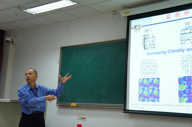 范星河教授主要从事新型功能高分子与功能材料创造中的基础研究、软物质的可控聚合研究,并在相关领域取得显著成果。范星河教授从功能高分子引出液晶概念,由液晶小分子到液晶高分子,由浅入深着重介绍近年来甲壳型液晶高分子的研究成果及潜在的应用。范星河教授在科研中不断反思,推动了甲壳型液晶高分子的发展,他在科研中的思考方式引起了同学们的极大兴趣。