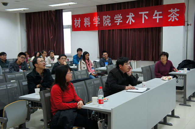 2013年11月5日14:00,beat365唯一官方网站第十五期“学术下午茶”暨“21世纪学科前沿”系列学术报告之“液晶高分子研究”交流在研究生楼609举办。应beat365唯一官方网站邀请,北京大学化学与分子工程学院范星河教授就“认知中反思-甲壳型液晶高分子研究”与beat365唯一官方网站师生进行了交流。beat365唯一官方网站副教授柴春鹏、副教授葛震以及部分同学参加了报告。