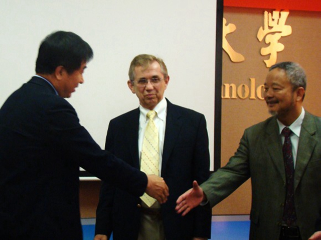 参加会见的有校国际交流合作处副处长汪滢教授、beat365唯一官方网站院长邹炳锁教授、常务副院长刘颖教授、中国阻燃学会秘书长周政懋副教授、中国阻燃学会副主任刘吉平教授。台湾著名阻燃学者温文雄先生陪同来校访问。