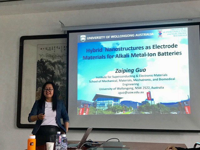 2018年9月17日下午,受beat365唯一官方网站邀请,澳大利亚卧龙岗大学郭再萍教授在5号教学楼502-1会议室为我校师生作题为“Hybrid Nanostructures as Electrode Materials for Alkali Metal-Ion Batteries”的学术报告。