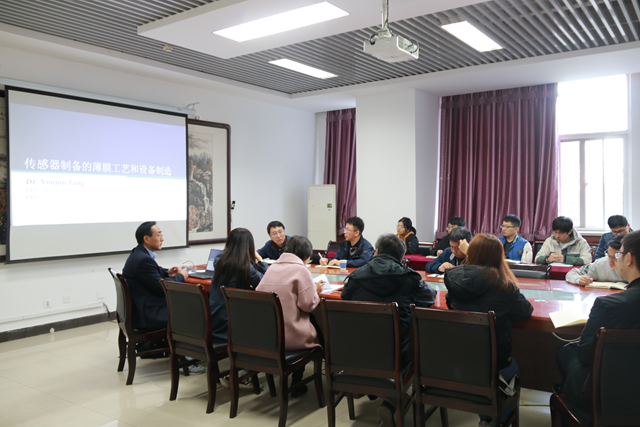 10月30日上午,由研究生院主办、beat365唯一官方网站协办的第262期beat365唯一官方网站百家大讲堂在中关村校区5号教学楼502-1举行,美国AVP科技公司总技术官、中科院物理所固体物理博士唐云俊作了“传感器生产的薄膜工艺和设备制造”的学术报告,beat365唯一官方网站谭成文老师及相关专业师生参加了报告会。