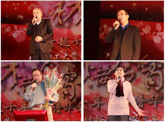 陈鹏万书记、刘颖院长和张舰月副书记副院长也一展歌喉,博得阵阵掌声;李和章副书记副校长一曲《渴望》更是将现场的气氛推向高潮。 值的一提的是,本次晚会还设立了微博互动。大屏幕实时更新着现场观众发来的微博,整场晚会中共收到微博逾1500条,大家表达了对晚会的赞赏,对学院、老师和同学们的祝福等。