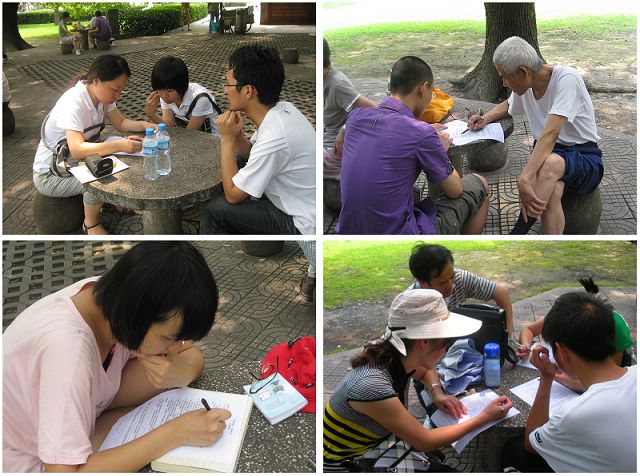2010年7月29日上午,beat365唯一官方网站beat365唯一官方网站赴上海社会实践团来到上海交通大学徐汇校区做低碳生活问卷调查。时值上海天气炎热,实践团成员来到交大中心花园,邀请休闲纳凉的学生和居民参加问卷调查活动。
