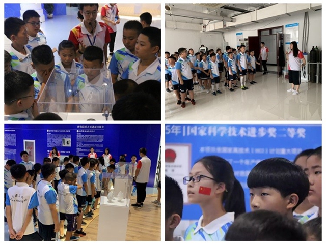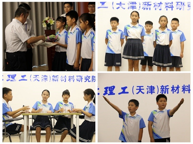 实践团成员带领营员参观了北理工(天津)新材料研究院的材料展厅、中试实验室等,给营员们上了一堂生动的材料学课程,并向营员们讲述了北理工的光荣历史和文化,弘扬了“延安根、军工魂”的北理工精神。为了厚植爱国情怀,表达对祖国母亲70周年的华诞的庆祝和喜悦,社会实践团成员和青少年营员录制视频共同祝祖国母亲生日快乐,祝伟大祖国繁荣昌盛!