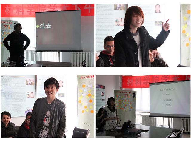 在接下来的发言阶段,每个人都配合自己精心制作的PPT总结了两年来的得失与经验教训,且提出了今后两年的目标。和开题报告时相比,大家的发言都成熟了很多,内容也更加深刻而真挚。有的同学总结了学习中存在的问题;有的同学回顾了自己在学生工作中的收获;有的同学谈到了寝室朋友之间深厚的情谊;有的同学反省了自己把过多的精力用于游戏的错误。同学们都表示要吸取这两年的经验,为将来的人生打好基础。