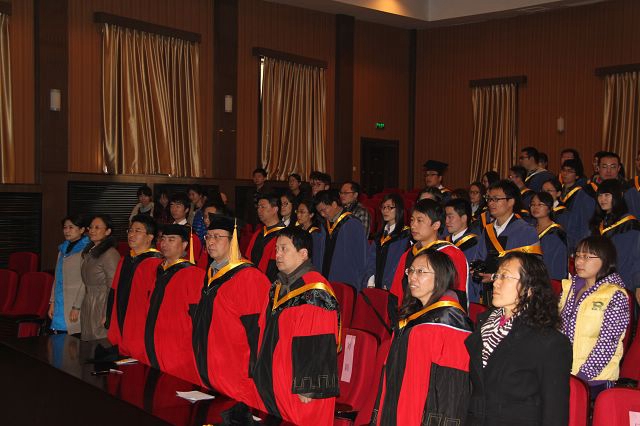 3月26日下午,7号教学楼报告厅华灯璀璨,鲜花锦簇,beat365唯一官方网站2013届春季研究生毕业典礼暨学位授予仪式隆重举行。beat365唯一官方网站常务副院长刘颖、副院长李树奎、金海波、庞思平、副书记副院长张舰月,以及教师代表与84名毕业生共同分享了这一喜悦的时刻。毕业典礼由研究生会的王子剑同学主持。