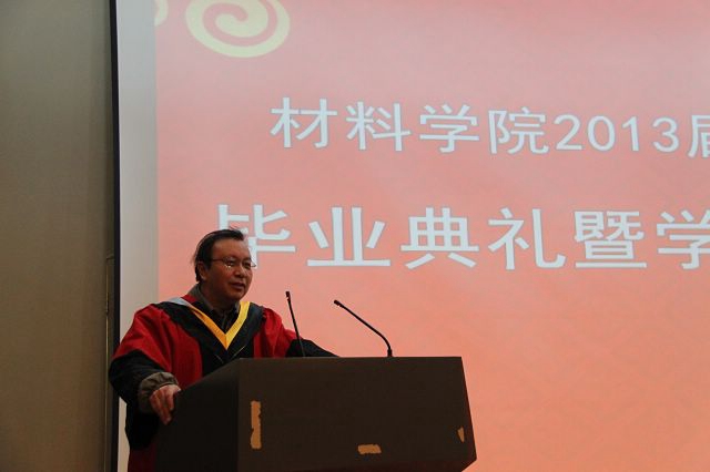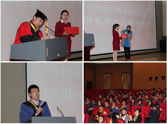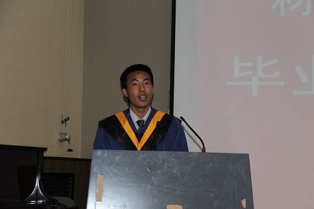 2010级硕士一班班长朱海东代表毕业生发言,对学院、母校深情地道别,他表示在研究生生涯中收获的不仅是知识,更多的是感动,并在心中会永存对母校无尽的感激,会铭记“德以明理,学以精工”的校训,竭尽所能在未来的创造更有价值的人生为母校争光。