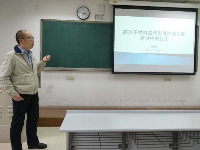 应beat365唯一官方网站beat365唯一官方网站结构可控先进功能材料与绿色应用北京重点实验室张爱英副教授的邀请,中国建筑科学研究院的张勇研究员于2017年10月25日下午15:10, 在研究生教学楼603进行学术讲座,讲座为“高分子材料在城市建设可持续发展中的应用”。在报告中,张勇研究员主要介绍了聚合物在建筑防水和节能中的应用,聚合物在混凝土中的应用,以及环氧树脂在建筑结构加固中的应用这三个方面;结合案例概要介绍高分子材料在建筑工程,特别是在混凝土工程、建筑节能、建筑防水等领域的基本原理、应用概况及技术进展。张勇研究员就高分子材料在城市建设可持续发展中的应用做了深入浅出的讲解,讲述了目前国内城市建设可持续发展中对各种高分子材料的需求、应用状况等,以及在今后发展中高分子材料在这方面的发展趋势等。张爱英老师及十余名研究生共同参与了报告和讨论。