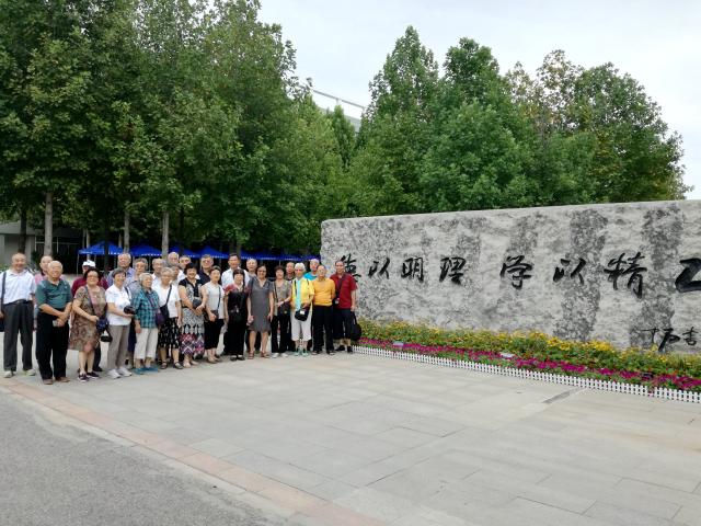 午饭过罢,下午三点,校友们乘车到达徐特立图书馆,开始了良乡校区的参观。下午的活动从参观徐特立图书馆开始。在图书馆前厅,校友们纷纷与徐特立老先生的雕像合影。随后,志校友们走入图书馆长廊,参观了合教学楼前的小广场。校友们还在校训石前拍集体照留念。