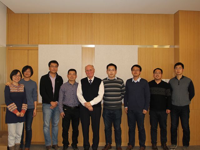 11月28日下午,Dieter Fenske教授在研究生楼5层东侧报告厅做了学术报告,在介绍了德国Karlsruhe Institute of Technology (KIT)的材料、化学学科建设基础上,介绍了他本人课题组在过渡金属原子簇化合物,主族金属元素簇合物与纳米级团簇化合物从精确解析簇合物晶体结构角度的研究。Dieter Fenske教授所研究的有关金属簇合物的原创性成果得到了世界上众多同行的认可,产生了深远的影响,发表Angew. Chem. Int. Ed.、Adv.Mater.等论文490余篇。报告深入浅出,大家争相提问,现场气氛热烈,讲座在大家的欲犹未尽中结束。会后与学院的青年教师李霄羽教授、李红博教授等进行了深入的学术讨论。