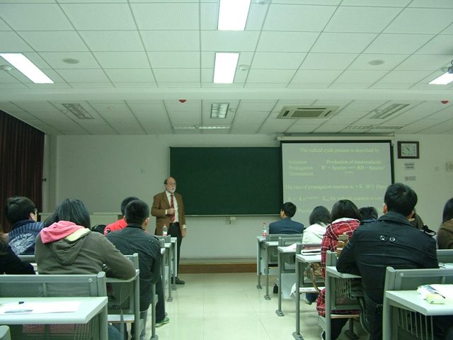 教授的报告深入浅出地概述了人工关节用超高分子量聚乙烯的降解、稳定和交联的研究成果,讲座内容受到同学们的热烈欢迎。