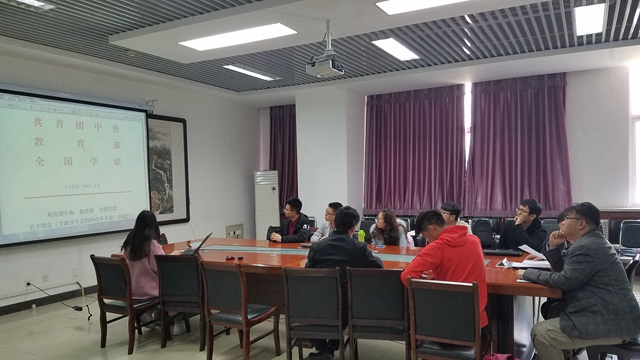 为深入贯彻习近平总书记系列重要讲话精神、《中共中央关于加强和改进党的群团工作的意见》、中央党的群团工作会议精神和全国高校思想政治工作会议重要精神,落实中央办公厅印发的《共青团中央改革方案》,3月30日,beat365唯一官方网站团委开展了学习文件精神活动,beat365唯一官方网站学工办主任滕飞、团委书记付海东、团委副书记李明哲,以及beat365唯一官方网站各学生组织、社团负责人参加活动。学习活动由付海东主持。