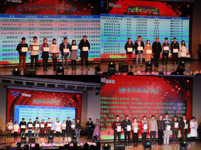 晚会也要一睹学霸风采。获得红宇优秀学生干部奖学金、AMS奖学金、周发崎奖学金、新思维奖学金的优秀同学们依次上台,张舰月、王全胜、周际平、马壮等嘉宾为他们颁发了奖状。