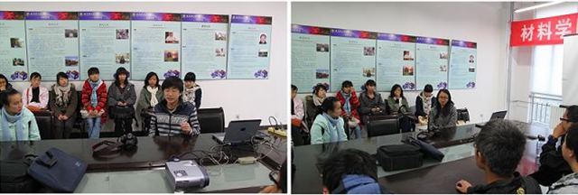 11月13日,材料化学系2010级新生在班主任张用友老师的带领下,前往校本部,参观实验室。