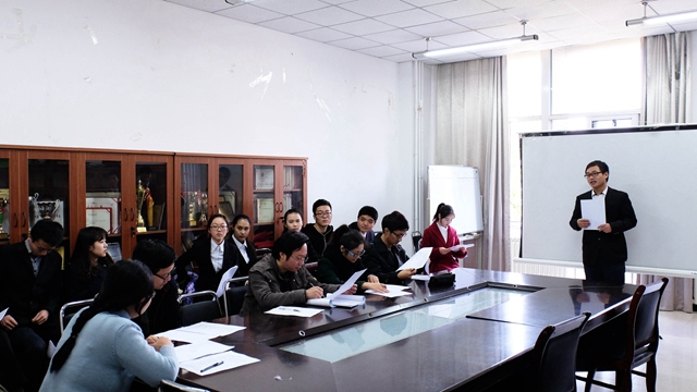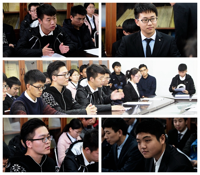 会议伊始,主持人介绍本次答辩会的主要流程:全班同学被分为六组,以群面的形式进行模拟面试,具体分为自我介绍与现场问答两个环节。同学们依次进行求职面试,正式的着装、从容认真的态度、自信大气的自我介绍给在场老师留下了很深的印象。现场问答环节中,同学们沉着冷静、机智、诚恳、展现着自己独到的思维与见解,赢得了在场老师和高年级学生的认可和赞许。