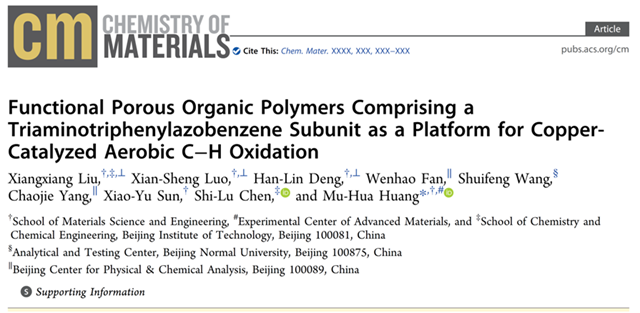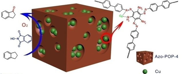 该工作发表在Chemistry of Materials (Functional Porous Organic Polymers Comprising Triaminotriphenylazobenzene Subunit as a Platform for Copper Catalyzed Aerobic C-H Oxidation, 2019, DOI: 10.1021/acs.chemmater.9b00590) (SCI顶级期刊,影响因子10.2)上。