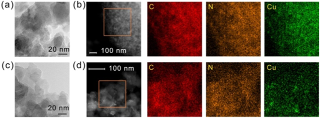 图四 Cu@Azo-POP-4的TEM照片及其内部元素分布图