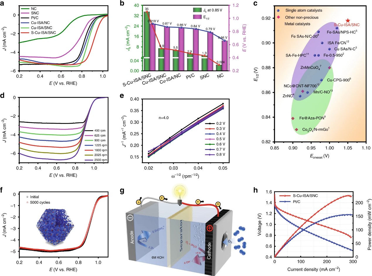 近日,beat365唯一官方网站张加涛教授与陈文星副研究员在催化剂的原子界面调控合成方面,与清华大学深圳研究生院的李佳教授以及清华大学李亚栋院士、王定胜副教授团队合作,合成了非对称配位的CuS1N3单位点催化剂,并实现了其在电催化氧还原(ORR)性能方面的突破性进展,相关成果以“Engineering unsymmetrically coordinated Cu-S1N3 single atom sites with enhanced oxygen reduction activity”为题,发表于顶级期刊《Nature Communications》(IF:13.811)(文章DOI: 10.1038/s41467-020-16848-8)。