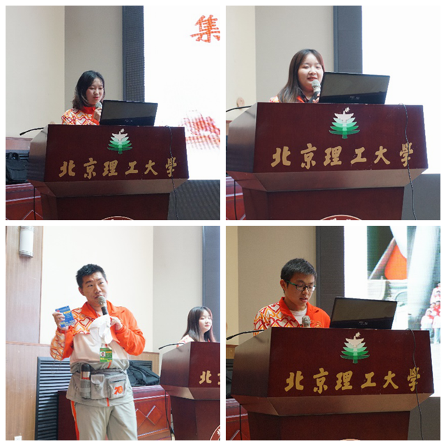 安检志愿者代表张宇清、袁晶晶、刘人天、刘涵霄为现场同学带来了他们如何对群众游行方阵安检、引路、服务保障的故事。张宇清说,他们作为集散安检服务的工作人员,工作场地无限接近天安门核心区域,但是却一次没有经过天安门,但是大家坚守自己岗位、严格遵守纪律,在国庆当天凭着仅有的手机大家一起看现场直播。袁晶晶说,尽管在一开始她的心情有些低落,但是随着志愿活动的进行,她开始热爱并且投入到这份事业中,她对自己能参加这次重大活动感到十分自豪和感动。刘人天为大家生动介绍了志愿者的服装和装备。刘涵霄则分享了在工作期间同学为他举办生日的美好故事。