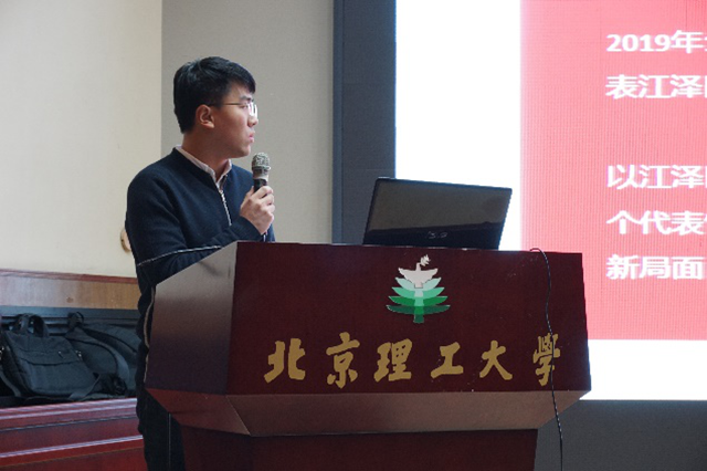 作为群众游行方阵的带队老师,2017级本科生辅导员禹世杰为现场同学们带来了一场别出生面的“方阵解密”。我校3499名师生构成了“与时俱进”方阵,代表江泽民主席走过天安门。禹世杰老师从方阵点阵图、方阵主题、方阵道具和训练过程等方面为同学们描述了自设计规划方阵到学生演练、游行现场的情景。他指出,游行训练的要求高、训练过程艰辛,但是大家通过天安门时都觉得艰辛坚持都是值得的,他以“使命”、“传承”与“感动”三个词对同学们提出新的鼓励和希望。