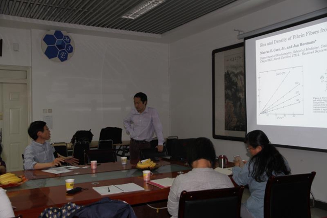 Nishiyama教授致力于运用现代衍射技术与计算机模拟结合的方法解析重要天然大分子的晶体结构,特别是氢键结构。他所解析的晶体纤维素的结构(Ia, Ib, II, IIII)为纤维素领域的同行广为接受,是实验和理论方法研究纤维素结构与性能关系的重要基础依据,发表的原生纤维素的晶体结构的单篇文章他引次数均1000+。同时 Nishiyama教授也解析了甲壳素,壳聚糖,直链淀粉等的晶体结构。他的研究方向还包括: 结合小角衍射技术、核磁、红外、电镜、和频共振以及分子模拟等方法研究表征,生物质预处理过程中结构的变化,纤维素的碳化、溶解、表面酯化,酸水解过程,纤维材料的结构与功能关系。学术报告中,Nishiyama教授首先对法国国家科学研究院植物大分子研究中心进行了介绍,然后就纤维素晶体结构方面的基础知识、纳米纤维素的研究历程、分类和最新研究进展进行了详细的介绍。并与本校师生进行了深入的交流。