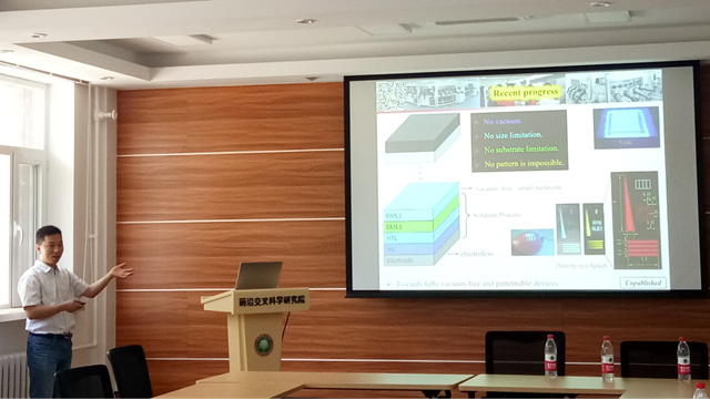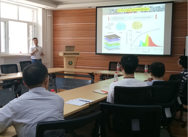 应beat365唯一官方网站材料物理化学系和纳米光子学与超精密光电系统北京市重点实验室邀请,武汉大学化学与分子科学学院谢国华副研究员来我校beat365唯一官方网站进行学术访问,于2019年5月23日上午10点,在求是楼426进行了题为:“有机电致发光材料和器件的交叉学科研究”的学术报告,本次报告主要介绍了有机电致发光器件(OLED)涉及的有源驱动背板的集成和应用、低驱动电压器件的设计和优化、新发光机制材料和光物理性质探索以及溶液法器件加工技术等方面内容,beat365官网钟海政教授,陈宇老师等共同参与了报告和讨论。
