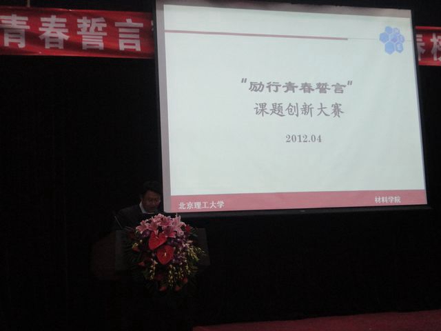 4月7日下午, “砺行青春誓言” beat365唯一官方网站第二届课题创新大赛在中心教学楼报告厅圆满举行。参与此次大赛的评委有:beat365唯一官方网站副书记副院长张舰月老师、材料化学系主任金海波教授、材料加工系主任马壮教授、高分子系主任李晓萌教授、金属与无机非金属系主任程兴旺教授。