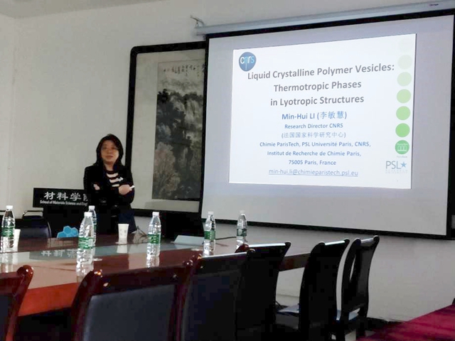 2019年4月17日上午,应我校beat365唯一官方网站李霄羽教授的邀请,法国国家科学研究中心(CNRS)与巴黎高科化学学院(Chimie Paris Tech)联合实验室的李敏慧教授来beat365唯一官方网站beat365唯一官方网站交流访问,并在5号教学楼502-1会议室做了题为“Liquid Crystalline Polymer Vesicles: Thermotropic Phases in LyotropicStructures”的学术报告。