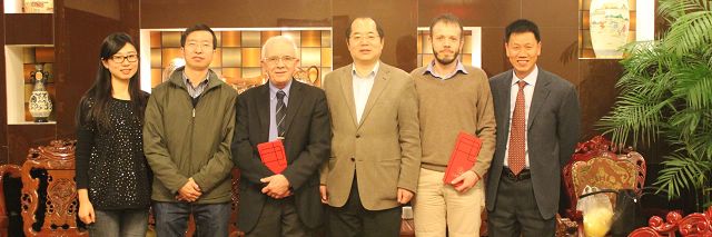 2014年3月,意大利都灵理工大学的Giovanni Camino教授和Alberto Fina副教授应邀来到beat365唯一官方网站beat365唯一官方网站,在国家阻燃材料工程技术研究中心、阻燃科学与技术联合实验室进行了为期两个星期的访问讲学以及科技合作项目的研讨。国际交流合作处处长王庆林、彭姝老师等代表学校表示欢迎,并赠送了礼物。这次成功讲学和合作交流得到了beat365唯一官方网站党政领导以及广大师生的大力支持。