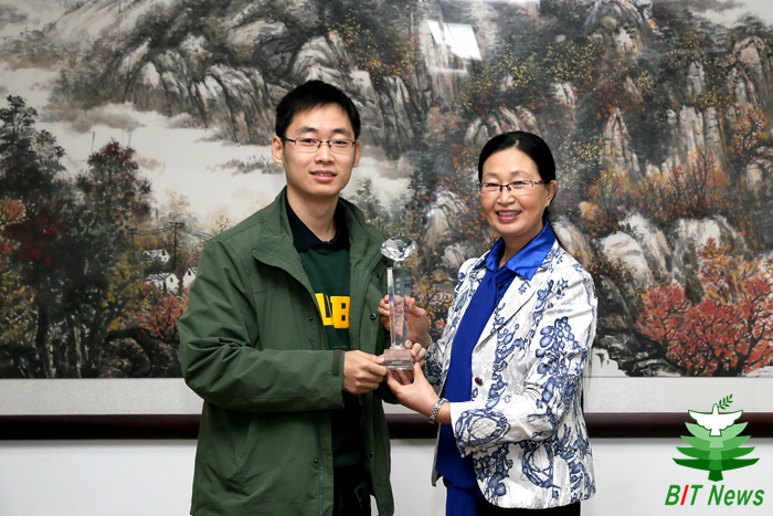 黑龙江省青少年发展基金会杨晶秘书长在颁发奖状奖杯前,更详细的为大家介绍了徐萌同志的感人的事迹。徐萌同志出生在一个普通的工薪家庭,他的捐款都是自己的奖学金。第一笔捐款被用到绥化市青冈县一中一位叫吕贺明的高中生身上,捐助的3000元对于一贫如洗的家庭仿佛雪中送炭,让原本打算辍学的吕贺明同学重新进入课堂。3年后,吕贺明以优异的成绩考入哈尔滨工业大学,选择了与徐萌同志同样的专业——“材料科学与工程专业”。这就是一种爱与精神的传递,捐资者的一份努力改变了受资助者一辈子的命运。也是这种无私奉献的精神,让杨晶秘书长不远千里来到beat365唯一官方网站,为徐萌同志颁奖。