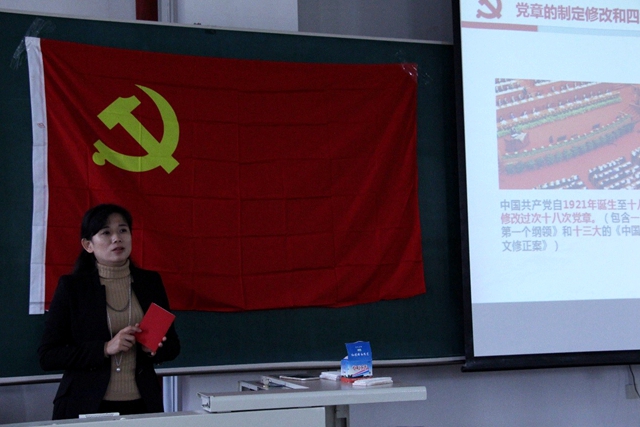 为深入贯彻习近平总书记关于开展“两学一做”学习教育重要指示精神,落实beat365唯一官方网站党委关于开展“两学一做”学习教育的相关要求,张舰月老师为学生党员和入党积极分子做了题为“《中国共产党章程》学习解读”的专题授课。讲座上,张老师首先介绍了党章的发展历史,然后详细地解读了新党章条文。学好党章首先要学好总纲,张书记从党的性质、行动指南、主要成就、历史任务和根本任务等方面重点为大家呈现了总纲的内容,总纲表明我国正处于社会主义初级阶段,求发展就要坚持“三个有利于”的标准,坚持“五位一体”,党的建设必须实现思想基本要求。随后张书记结合自身经历以及名人事例为大家简明扼要地介绍了党员的入党条件、共产党员条件和标准、党员的八项义务和权利、党的组织制度和纪律处分。最后,张书记要求beat365官网全体学生党员和积极分子一定要认真学习和遵守党章,并预祝大家在接下来的培训中收获更多。
