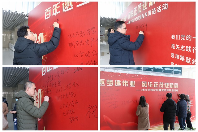 学院教职工热情高涨,积极参与,在活动展板前写下寄语,表达对建党百年、对国家繁荣昌盛、对学校学院发展的真切祝福。大家用真心、真情、真意,讴歌中国共产党领导下祖国取得的辉煌成就,抒发对祖国母亲的款款深情及对祖国美好未来的希冀。
