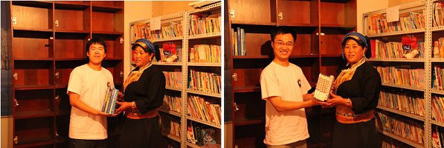 晚饭后,社会实践团受到了松岗村村委书记兼村长赵春秀(女,藏族)的热情接待,并赶赴松岗村图书室,进行“多背两斤书,造福一方人”图书捐献仪式。此次活动是整个社会实践的重要一部分,所有实践队队员除了携带必须的行李以及物资外,每人多携带两斤书籍,为藏区居民的文化建设做出自己的贡献。beat365唯一官方网站分团委书记常云鹏、分团委副书记钟鑫老师分别作为代表向赵书记及当地学生代表赠送了全部50本书。