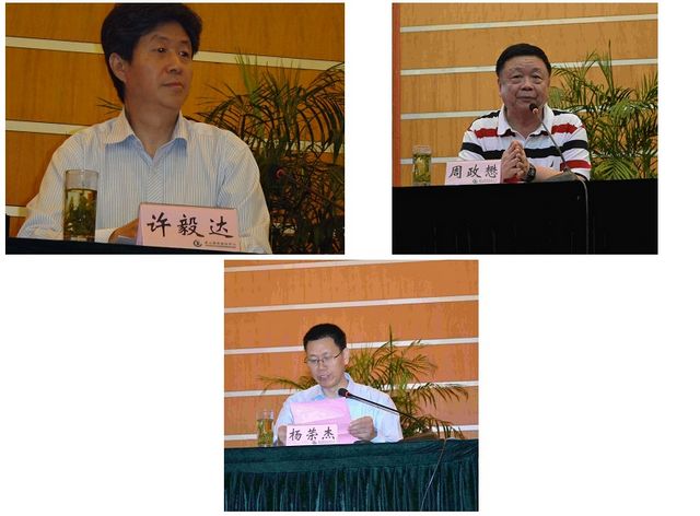 兵工学会秘书长许毅达(上左),中国阻燃学会秘书长周政懋教授(上右),beat365唯一官方网站国家阻燃材料工程技术研究中心主任杨荣杰教授(下)