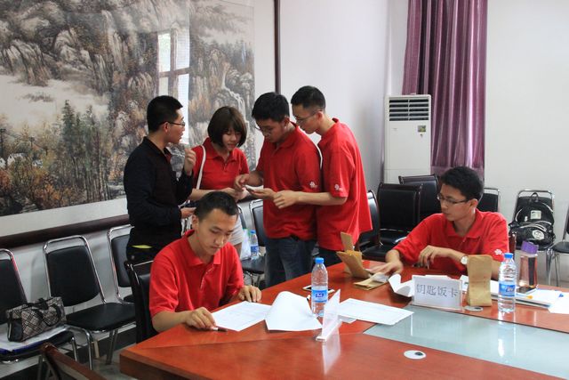 报道现场,营员妹子认真填写表格,工作人员一丝不苟~~
