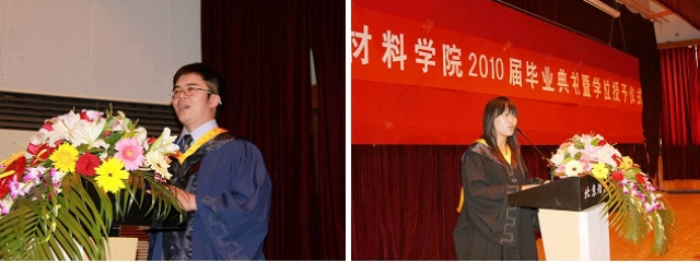 随后,刘颖副院长、李树奎副院长分别宣读了beat365唯一官方网站优秀研究生毕业生、优秀本科生毕业生名单并为之颁奖,优秀研究生、本科生毕业生代表分别做为毕业生代表做了讲话,表达对母校、学院以及老师的感激,以及对母校依依惜别之情。