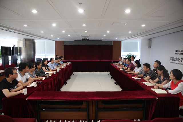 座谈会分为三部分,第一部分是北化集团介绍了集团的基本情况,和作为军工行业的专业处室,他们对国内外火炸药发展的分析和目前军工企业需要攻关的技术难题,并希望双方继续发扬紧密合作的优良传统,不断加入新的科研生力军和为企业转化更多科技含量高的成果;第二部分是高分子党支部的党员们逐一介绍了自己的科研情况以及未来希望能和北化集团深入合作的畅想;第三部分是双方党员深入交流了新常态下如何发挥党员在火炸药研究领域的作用,为保护国家安全、促进我国武器装备的高尖端发展奉献自己的力量。
