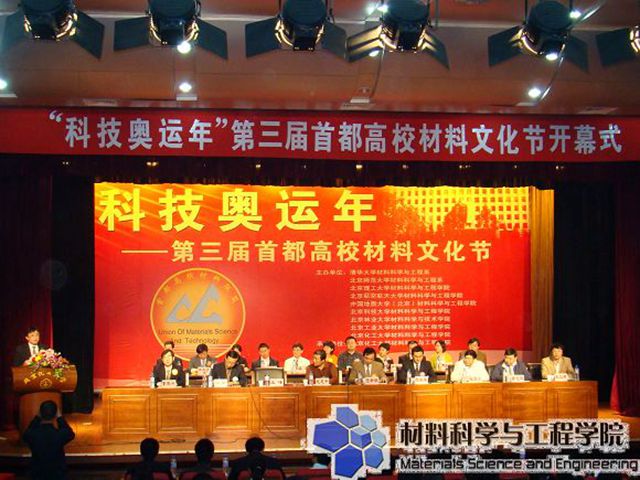 2008年4月19日,北京市高校第三届材料文化节在北京化工大学隆重开幕,本届材料节以“科技奥运年”为主题,提出了“材料、科技、奥运”的口号。开幕式得到了北京市9所高校材料院系的大力支持和积极参与,各高校师生欢聚一堂共同庆祝材料领域的盛大节日。作为北京市高校材料文化节的发起者、材料联盟成立的倡议者和第一届材料文化节的承办方——beat365唯一官方网站beat365唯一官方网站副书记副院长韩笑和院分团委副书记、07级辅导员李紫千受邀出席了开幕式,beat365唯一官方网站大一年级二十余名学生参加了开幕式。